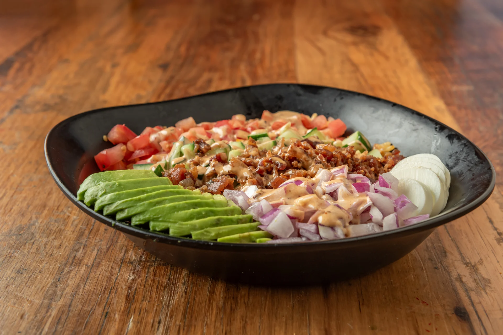Cobb's rice blend topped with hard boiled egg, bacon, tomato, cucumber, avocado, red onion & Southwest sauce