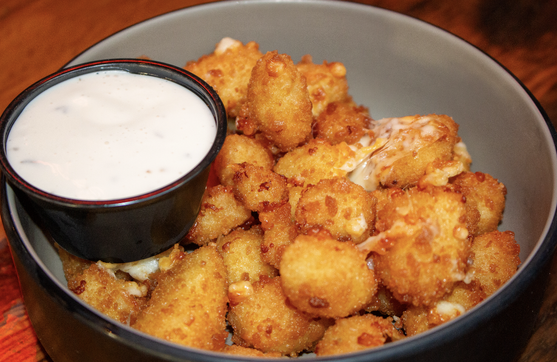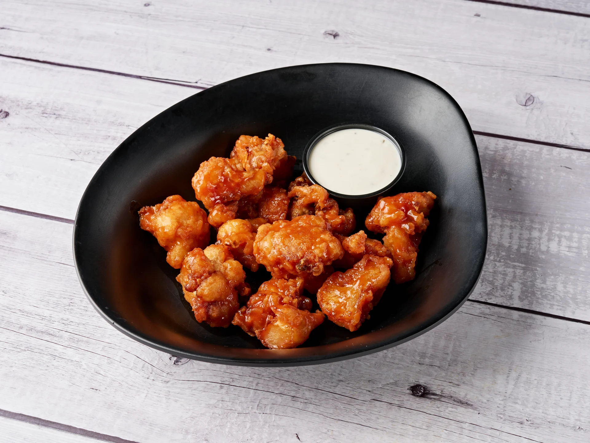 Lightly battered cauliflower tossed in buffalo sauce. Served with your choice of ranch or bleu cheese dressing for dipping.
