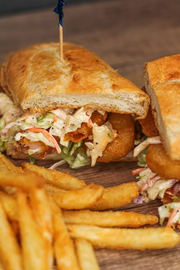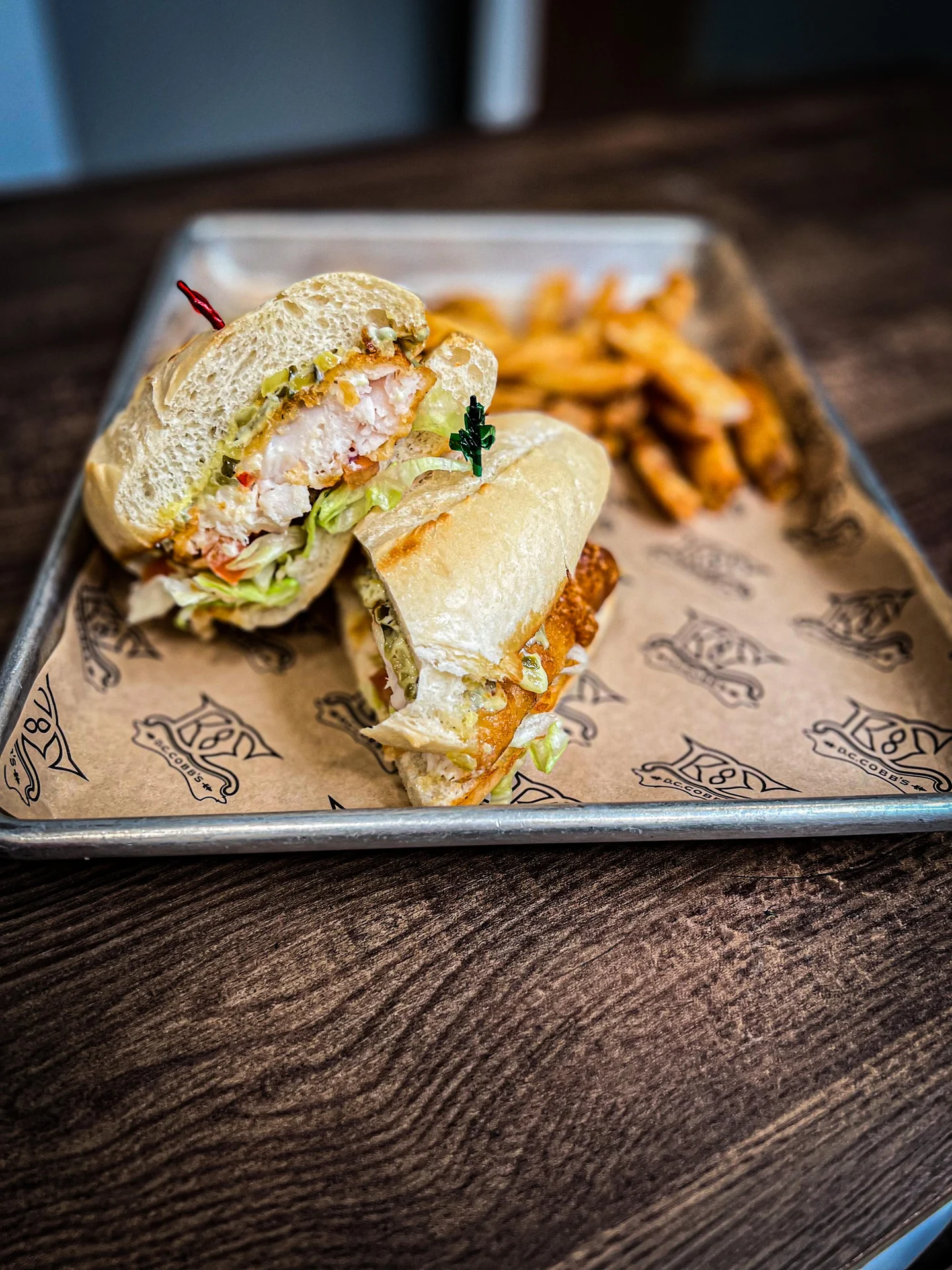 Battered Shrimp, Shredded Lettuce, Sliced Tomato, Cobb's Coleslaw, Homemade Remoulade, served with your choice of side.