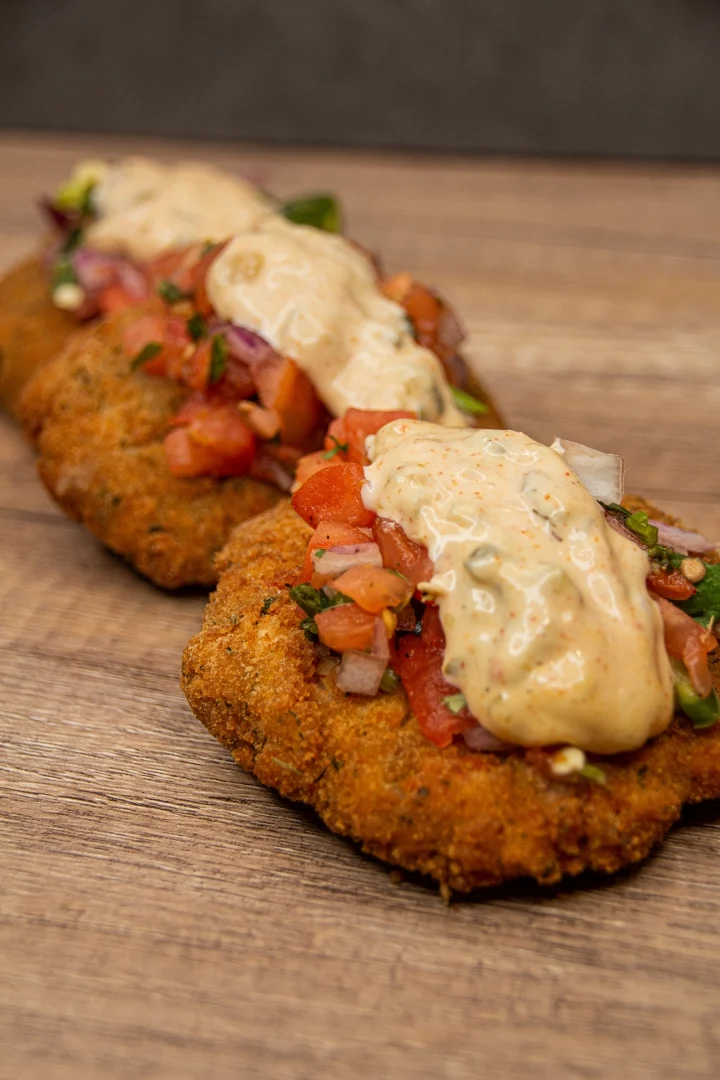 Homemade crab cakes topped with fresh pico de gallo, and our creamy remoulade sauce.