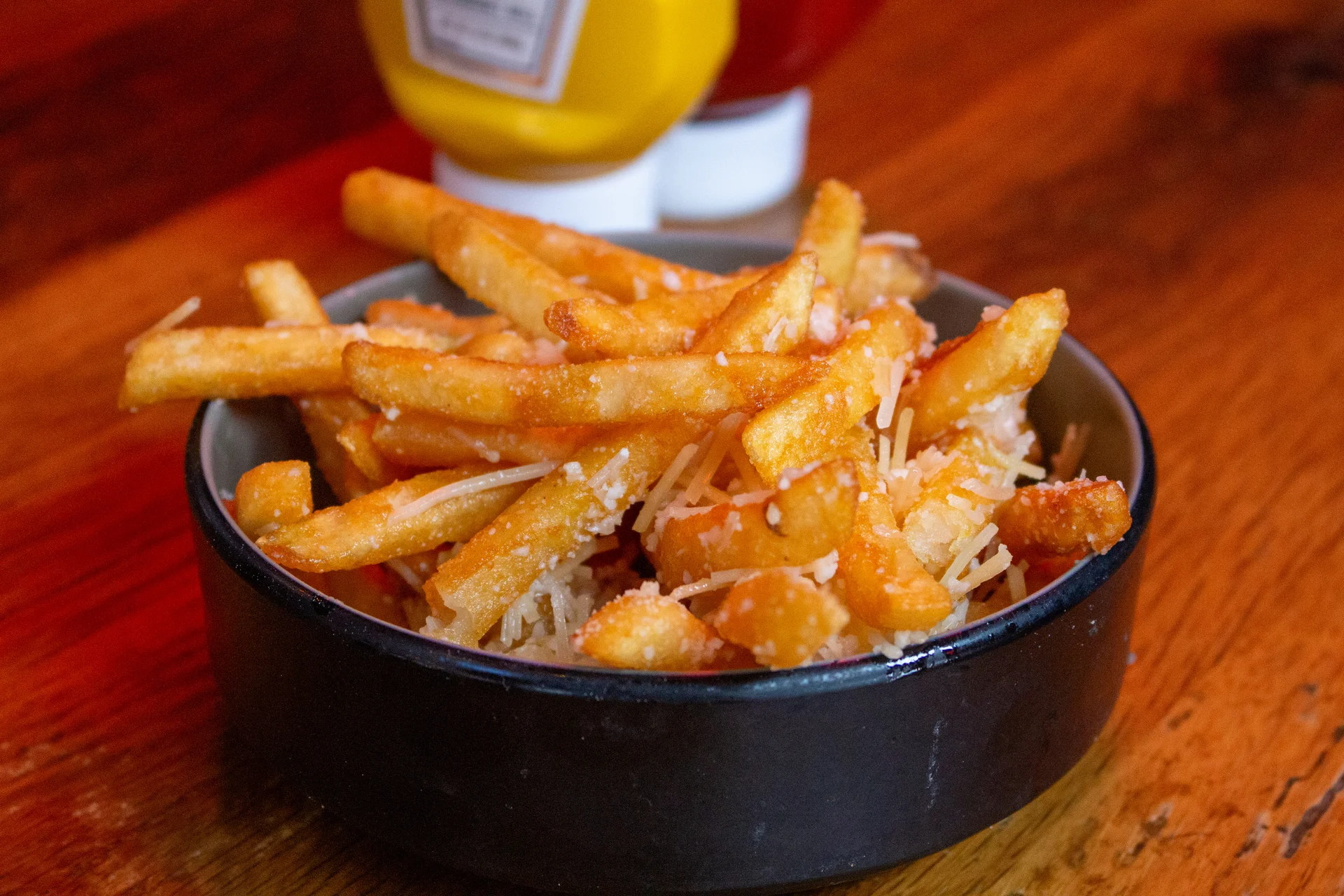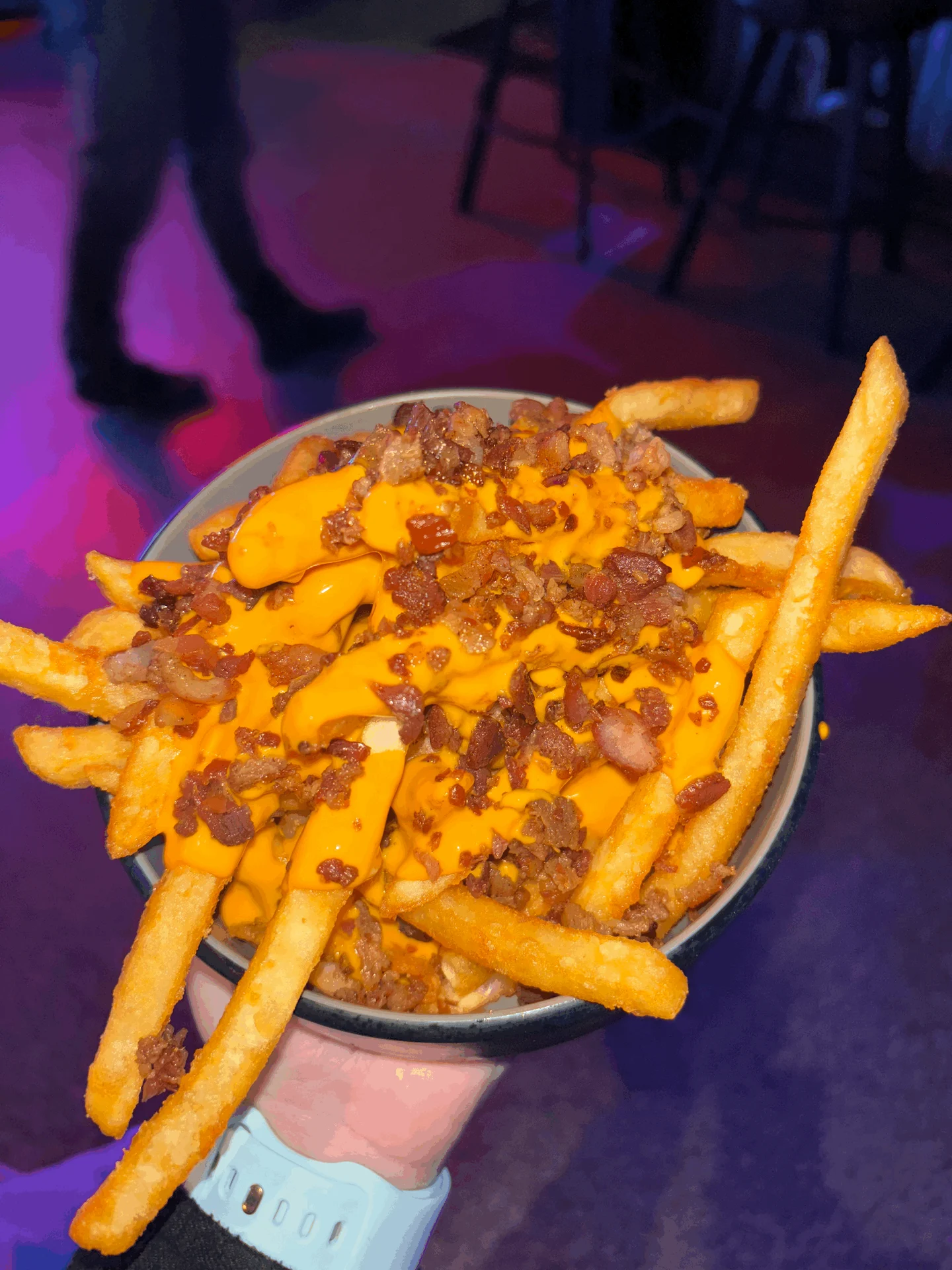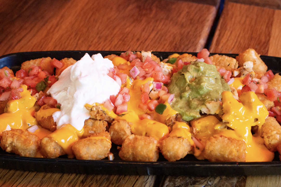 Crispy Tator tots topped with your choice of protein, nacho cheese, sour cream, pico de Gallo and guacamole.