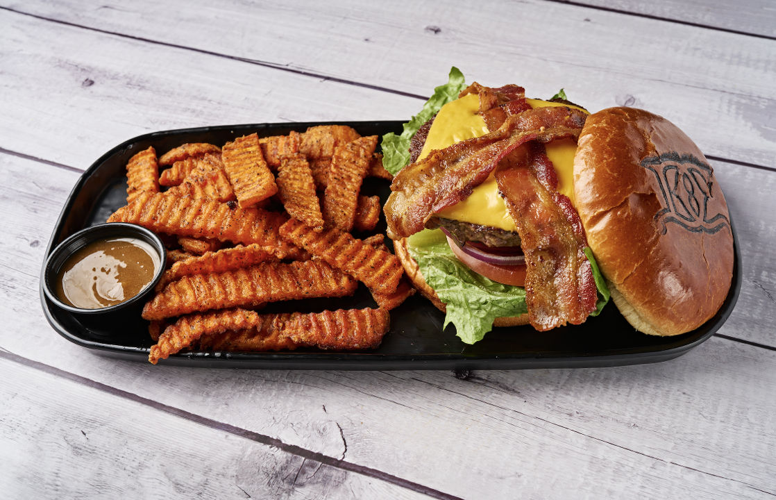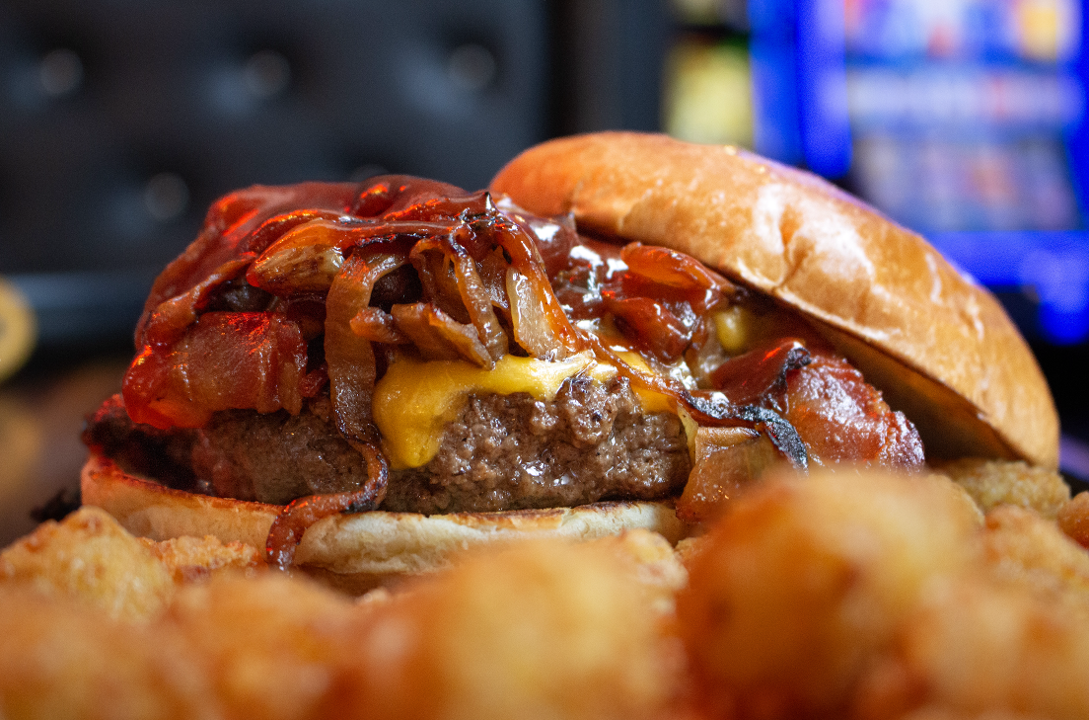 Sautéed Onion, Bacon, Cheddar, BBQ - A Classic Burger, Our House Specialty