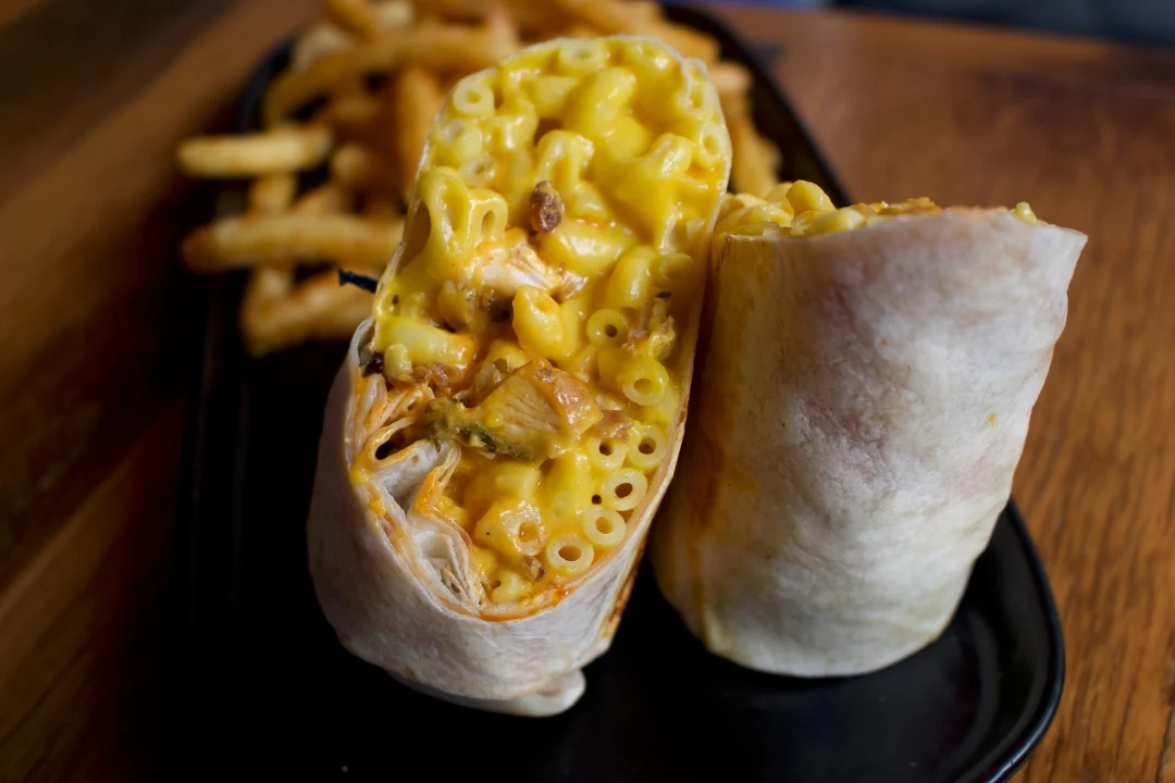 Cobb's Mac and cheese, diced chicken breast, crispy bacon, and buffalo sauce wrapped in a warm flour tortilla.