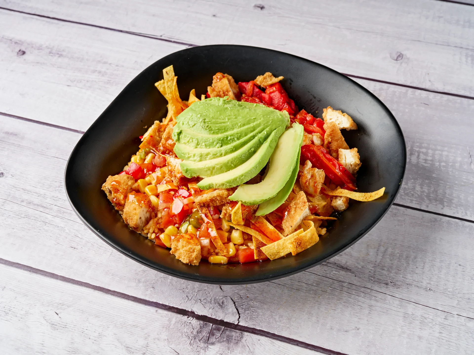 Cobb's rice blend topped with Honey-Sriracha Chicken, Fire roasted red pepper, corn salsa, tortilla chips & avocado.