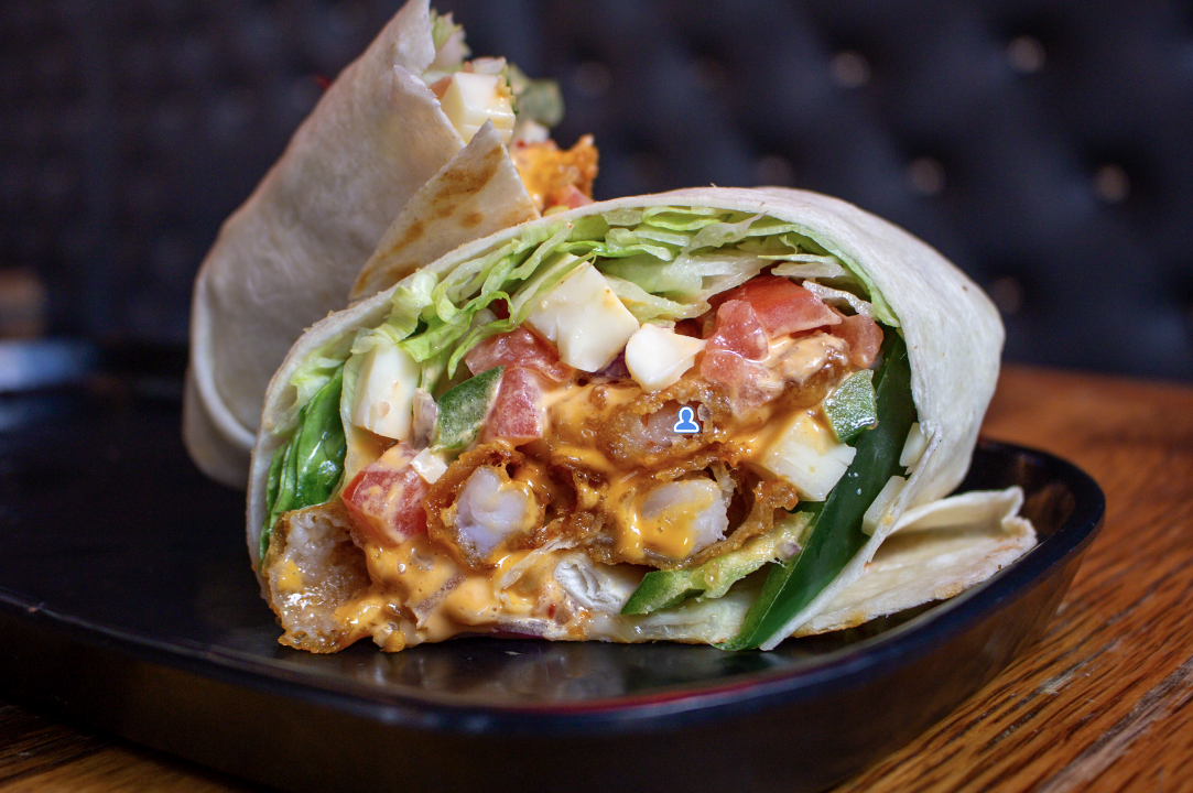 Crispy fried chicken, bacon, lettuce, tomato, and mayo, wrapped in a warm flour tortilla.